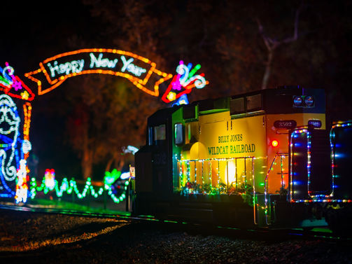 Ride aboard the Annual Holiday Train through the Fantasy of Lights show in Vasona Park.